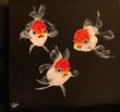 I paint in acrylics mostly on canvas, but I love to paint on rocks, shells, wood (especially furniture), and anything unadorned. When I see a blank space I want to fill it up. I dabble with air-dry clay and make "trash art" by transforming old containers into decorative pen holders, animal sculptures, and general kitsch.
