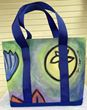 Each piece begins with hand-painted acrylic on canvas or recycled French linen, materials chosen not only for their beauty and durability, but also for their history and character. Abstract brushstrokes, layered textures, and vibrant color stories are painted directly onto fabric, turning raw material into a living work of art. From there, I translate each painted surface into a functional tote bag, thoughtfully crafted to honor the movement and spontaneity of the artwork. No two pieces are alike; each one is a wearable artifact of our shared process.